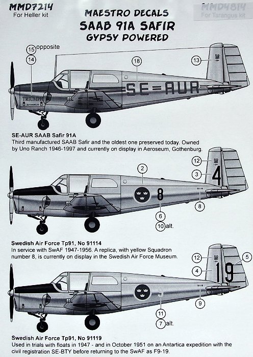 Maestro Model - 1/72 SAAB 91A Safir w. Gypsy engine (designed to be used with Heller kits)