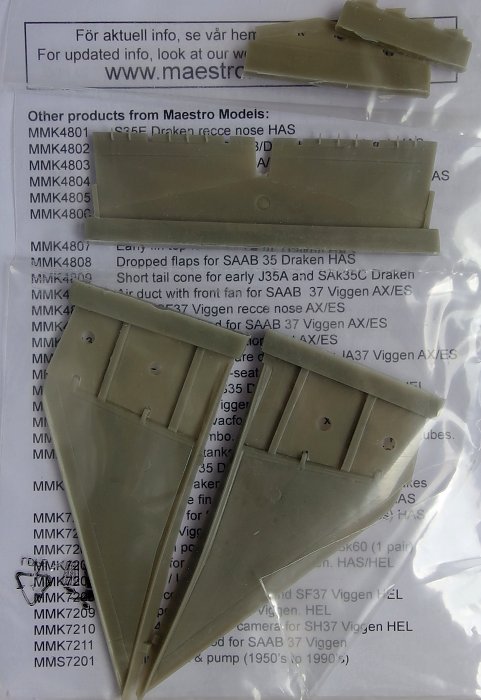Maestro Model - 1/48 Canards with lowered flaps for Saab JA-37 Viggen (designed to be used with Special Hobby and Tarangus kits)
