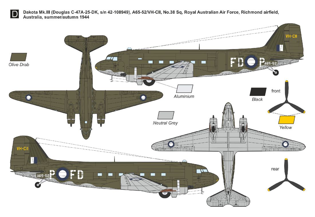 Dakota Mk.III Douglas C-47A-25-DK, s/n 42-108949, A65-52/VH-CII, No.38 Sq, Royal Australian Air Force, Richmond airfield, Australia, summer/autumn 1944