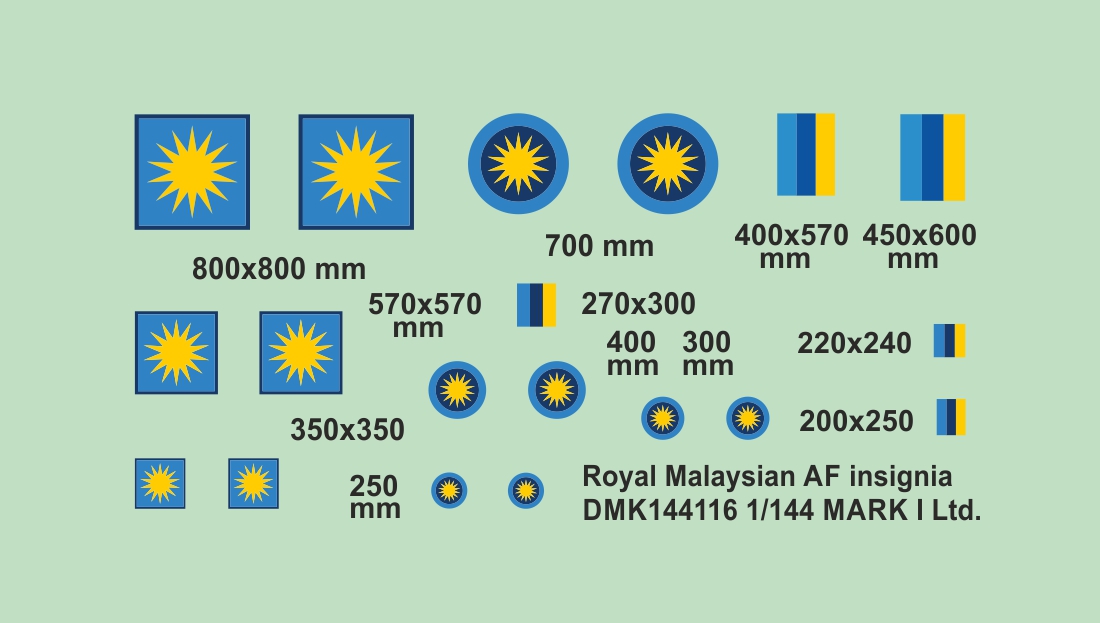 insignia sizes: 350x350,570x570,800x800 mm, fin flashes: 200x250,220x240,270x300,400x570,450x600 mm