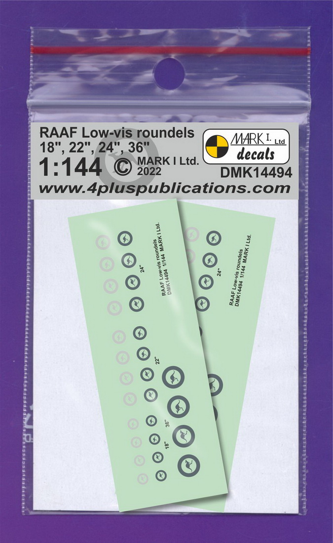 4+ PUBLICATIONS - 1/144 Decals RAAF Low-vis roundels (2 sets)