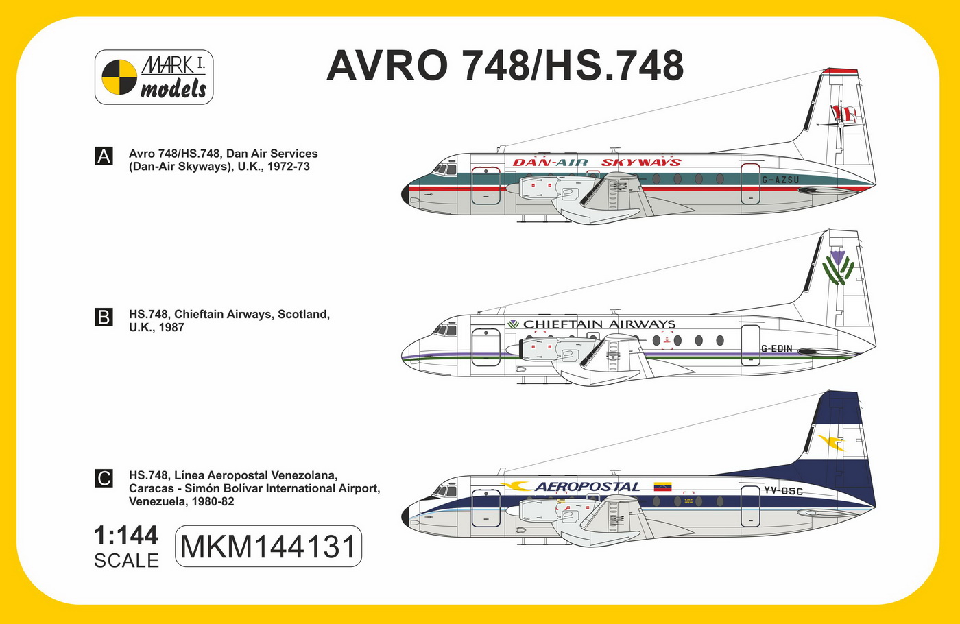 Mark I Models - 1/144 Hawker-Siddeley HS.748 The Budgie (Dan-Air Skyways, Chieftain Airways, Aeropostal Venezuela)