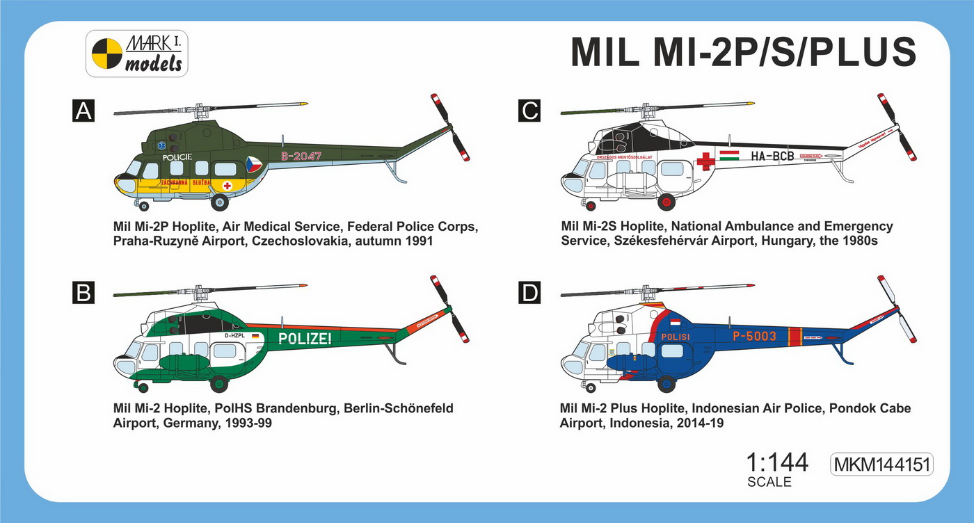 Mark I Models - 1/144 Mil Mi-2 Hoplite 'Police and Medical Service' (2in1 = 2 kits in 1 box) (Czechoslovakia, Germany, Hungary, Indonesia)