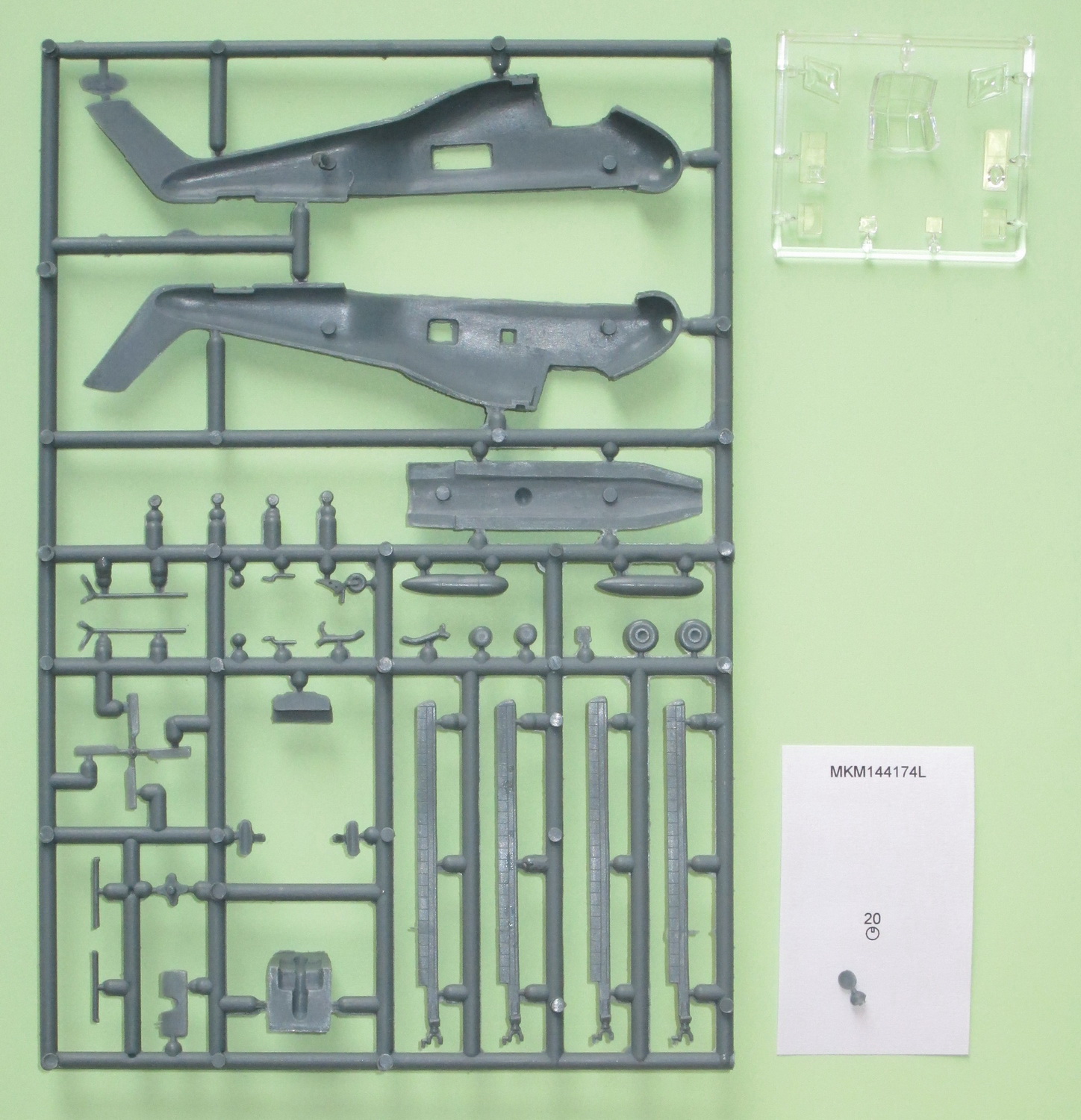 This injection-moulded kit contains 36 parts and 6 clear parts the cockpit canopy and the fuselage windows. A comprehensive instruction leaflet and a decal sheet are included.