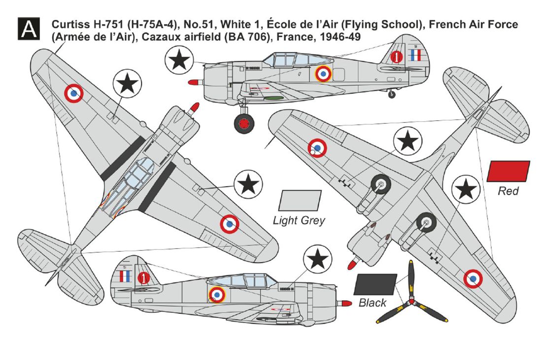 1 Curtiss H-751 H-75A-4, No.51, White 1, Ecole de l'Air Flying School, French Air Force Armee de l'Air, Cazaux airfield BA 706, France, 1946-49