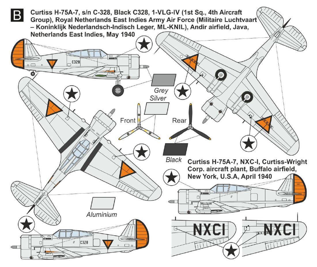 Curtiss H-75A-7, s/n C-328, Black C328, 1-VLG-IV 1st Sq., 4th Aircraft Group, Royal Netherlands East Indies Army Air Force Militaire Luchtvaart-Koninklijk Nederlandsch-Indisch Leger, ML-KNIL, Andir airfield, Java, Netherlands East Indies, May 1940