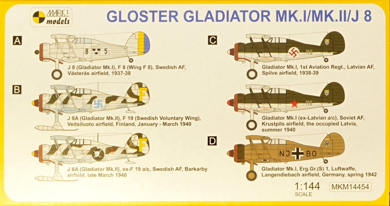 Mark I - 1/144 Gloster Gladiator Mk.I/II/J 8 'Foreign Service' (Swedish AF, Latvian AF, Soviet AF, Luftwaffe)
