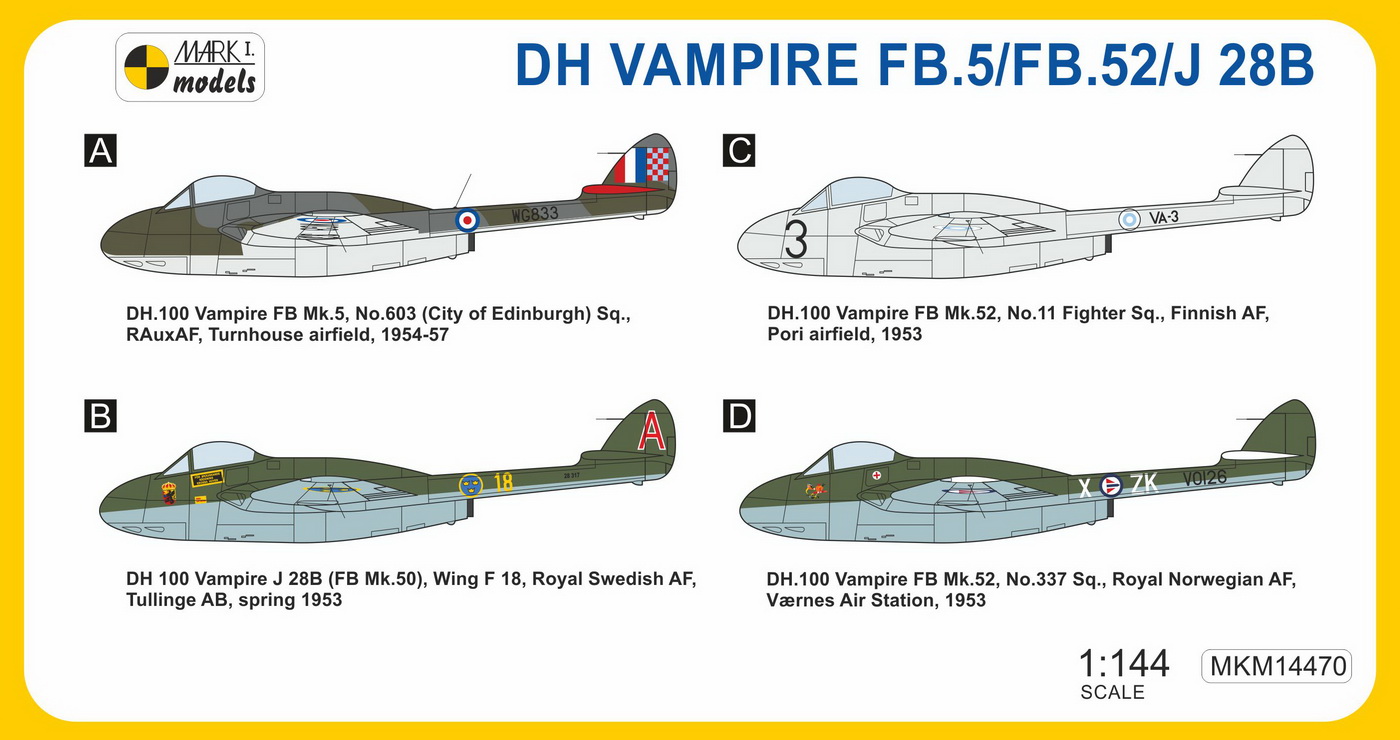 Mark I - 1/144 de Havilland Vampire FB.5/FB.52/J 28B In the North (2in1 = 2 kits in 1 box)