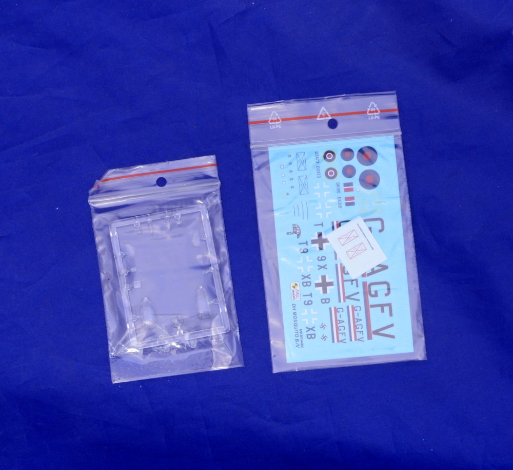 This injection-moulded kit contains 64 parts and eleven clear parts (the cockpit canopy, nose window, wing tips with position lights etc.). A comprehensive decal sheet is included.