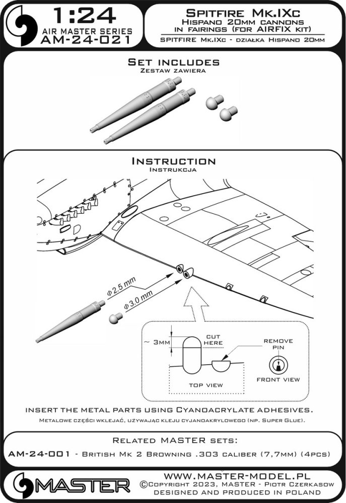 MASTER (PL) - 1/24 Spitfire Mk.IXc Hispano 20mm cannons for Airfix