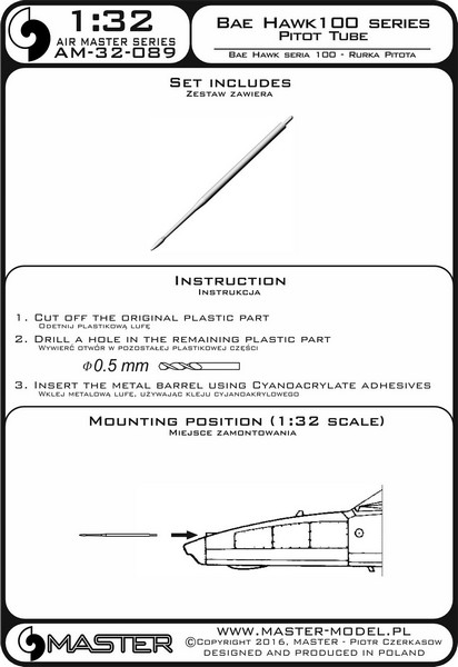 Master (PL) - 1/32 BAE Systems Hawk 100 series - Pitot Tube (for Revell kits)