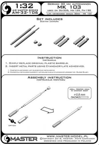 Master (PL) - 1/32 MK 103 - German 30mm autocannon - used on Dornier Do-335, Henschel Hs-129 and others (for Hong Kong)