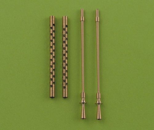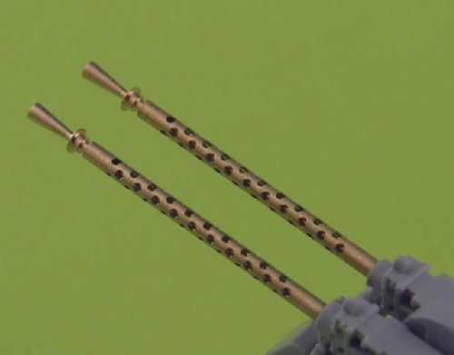 Master (PL) - 1/35 Browning M2 aircraft .50 caliber (12.7mm) barrels with flash hiders (x 2 pieces) Used in many types of aircraft, Pt boats and Afv during WWII and after. Version with flash hiders widely used on Pt boats. The set includes two turned brass barrels with drilled cooling jacket. It is very simple to use in Your model, and makes it extremely realistic. Simply cut off the original plastic barrel and drill a hole in the remaining plastic parts and insert the metal barrel using Cyanoacrylate adhesives.
