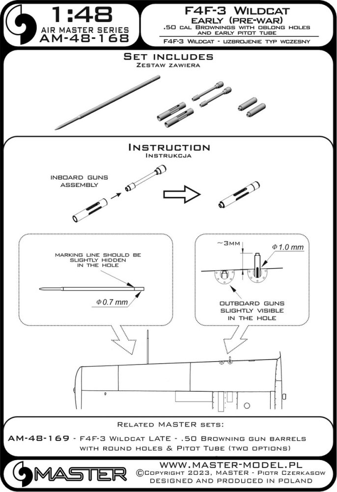 MASTER (PL) - 1/48 F4F-3 Wildcat Early .50 Browning gun barrels