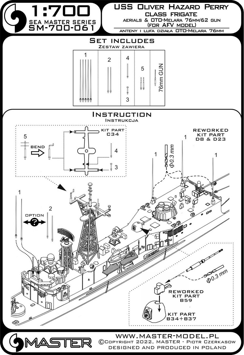 Master (PL) - 1/700 Uss Oliver Hazard Perry class frigate aerials & OTO-Melara 76mm/62 gun barrel (for Afv kits)
