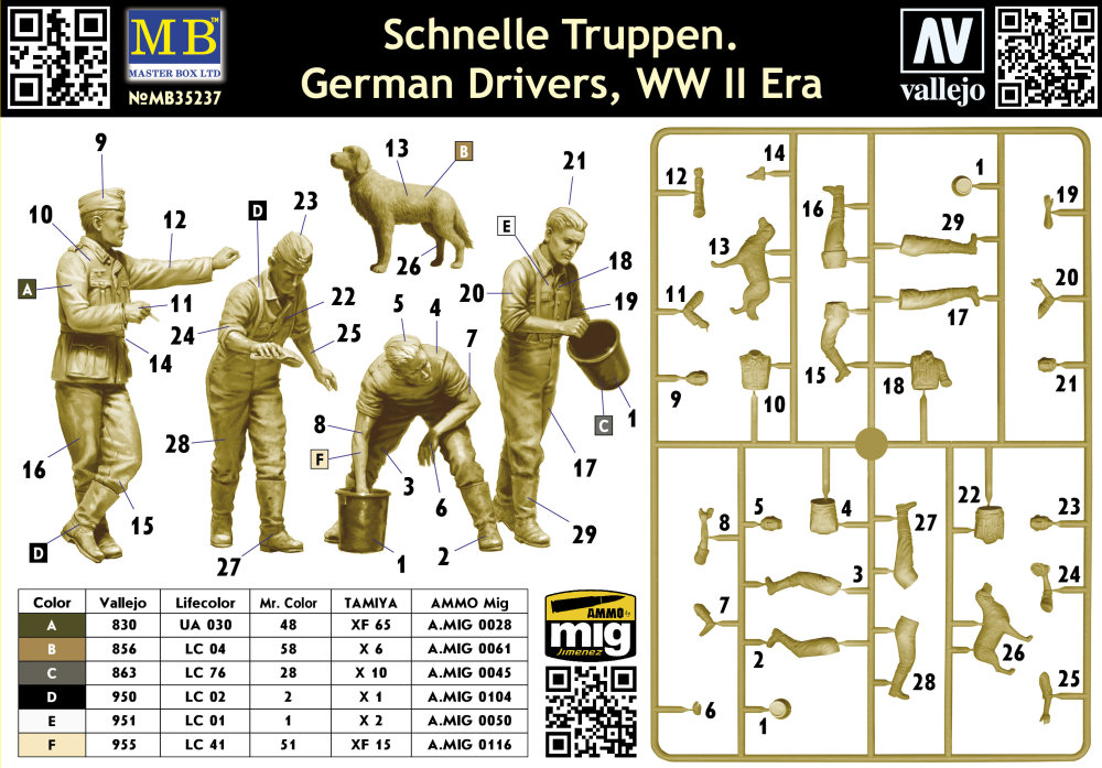 Masterbox - 1/35 German Drivers, WWII Era 4 figure & dog