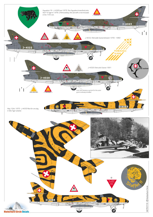 Matherhorn Circle - 1/32 Swiss Air Force Hawker Hunter Mk.58 / T Mk.68 decals
