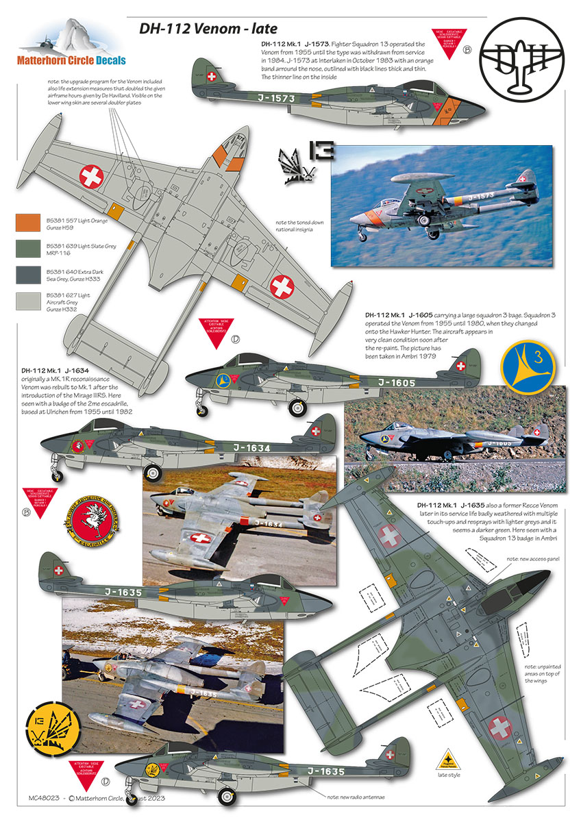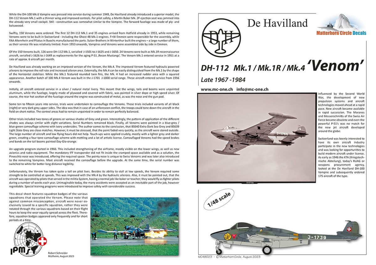 MC-one - Matterhorn Circle - 1/48 late Swiss DH-112 Venom Mk.1 / Mk.4 decals