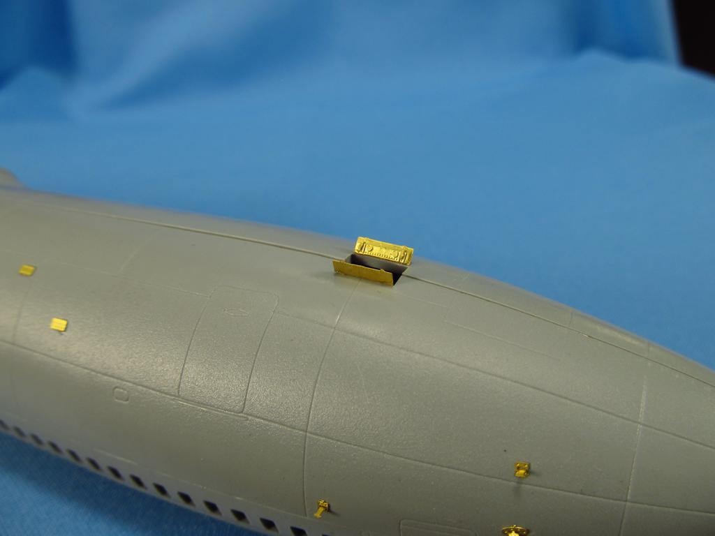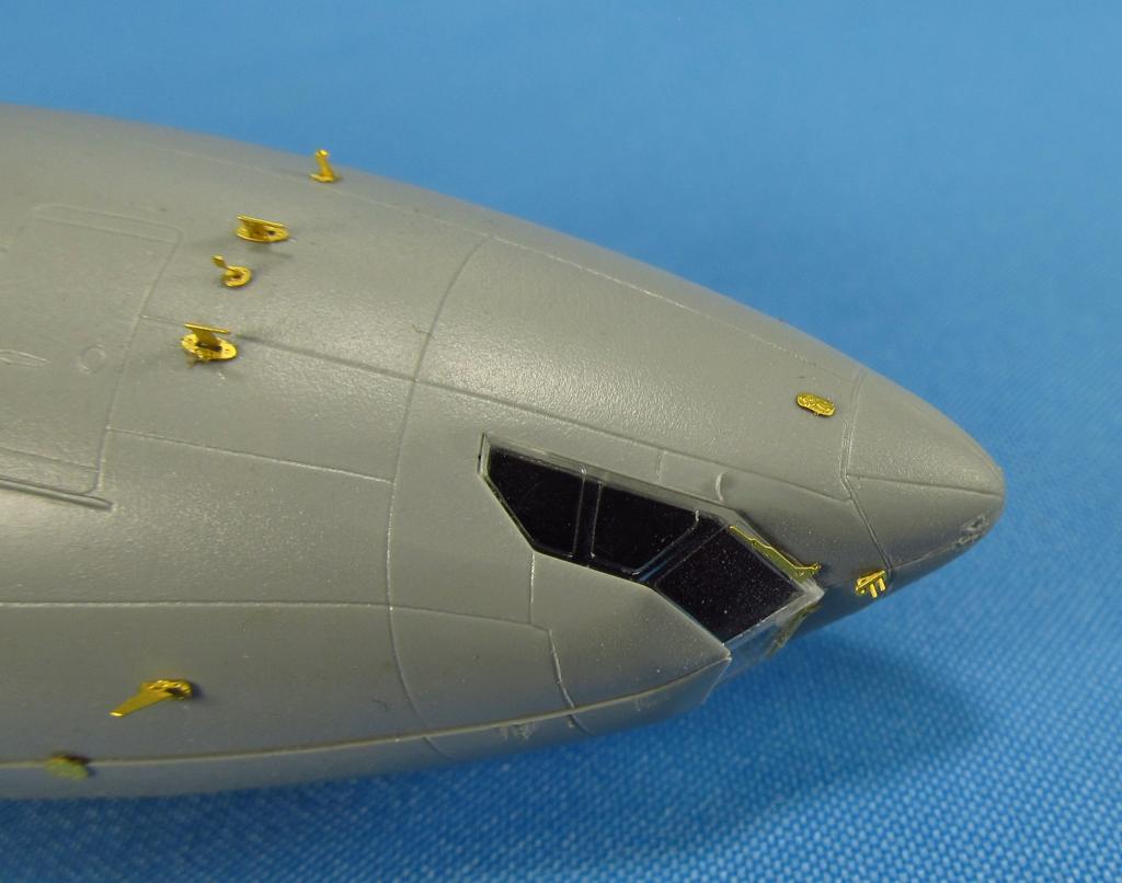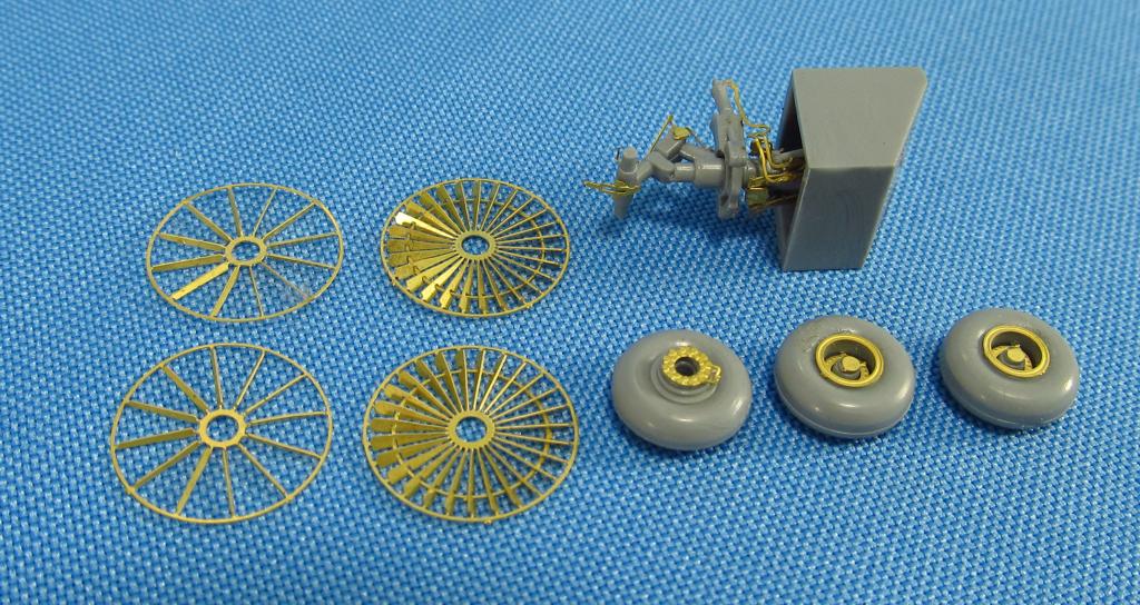 Set contains photoetching and resin (landing lights of front landing gear) parts for exterior detailing.