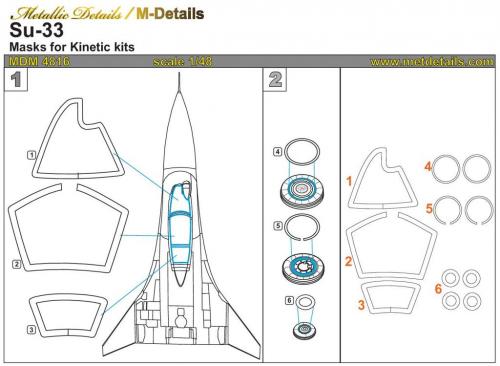 Metallic Details - 1/48 Sukhoi Su-33 Masks (for Kinetic Model kits)
