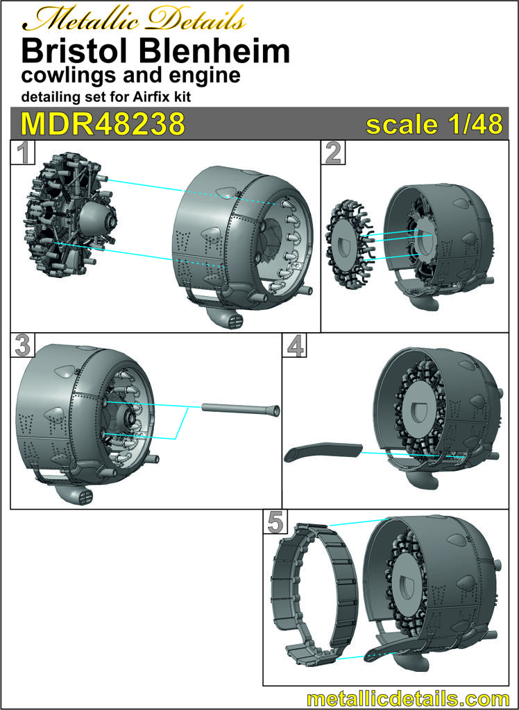 Metallic Details - 1/48 Bristol Blenheim Mk.I cowlings and engines 3d-printed for Airfix
