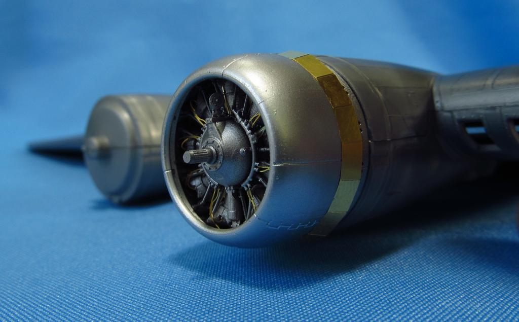 Set contains resin and photoetched parts for detailing engines, engine hoods, branch pipes of turbochargers.