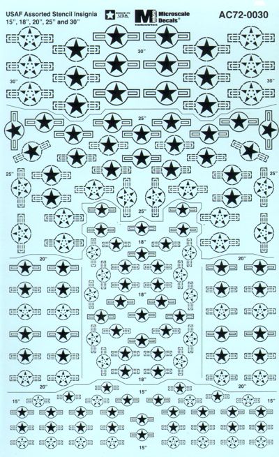 Microscale - 1/72 USAF Assorted Stencil Insignia 15 , 18 , 20 , 25 , 30