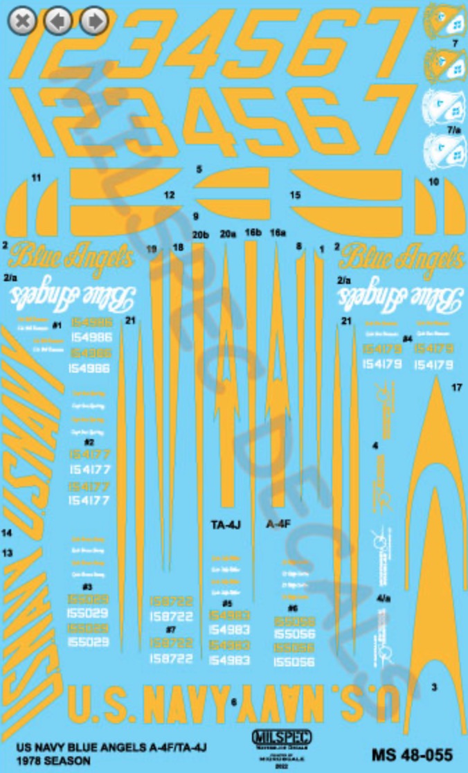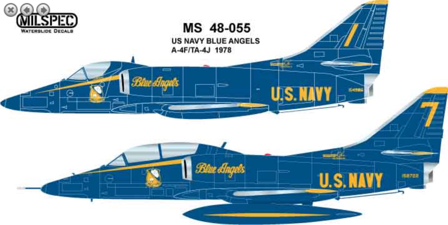 Milspec - 1/48 Douglas A-4F Skyhawk US Navy Blue Angels 1978. Blue Angels A-4F/TA-4J, 1978 Season Decals For One A-4F Or One TA-4J