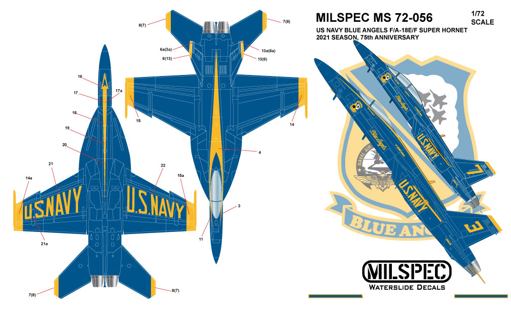 Milspec - 1/72 McDonnell-Douglas F/A-18E/F Hornet US Navy Blue Angels 2021