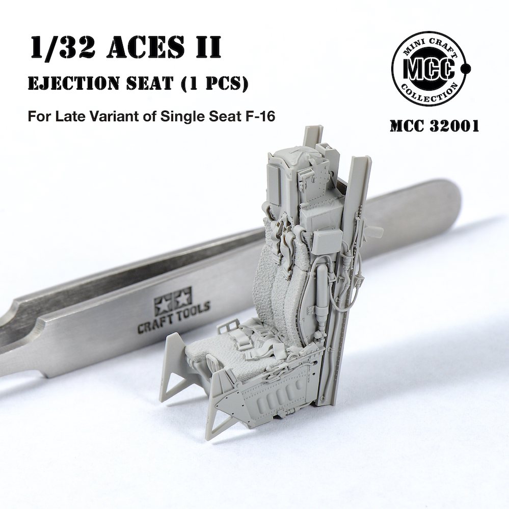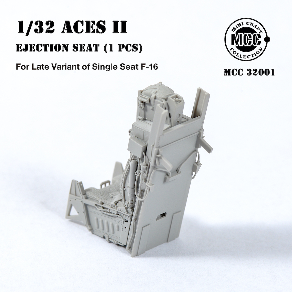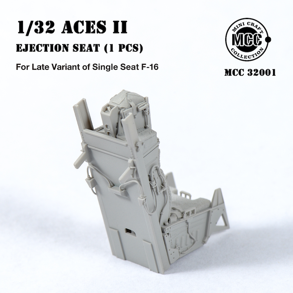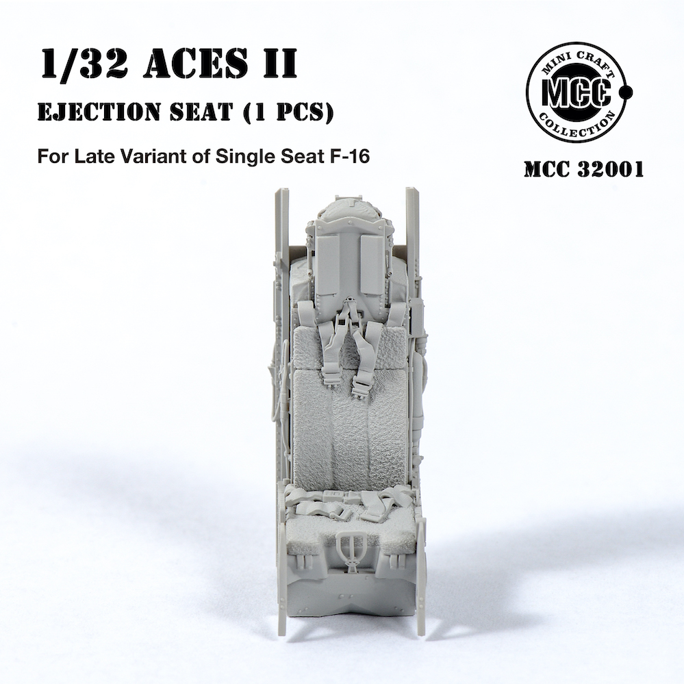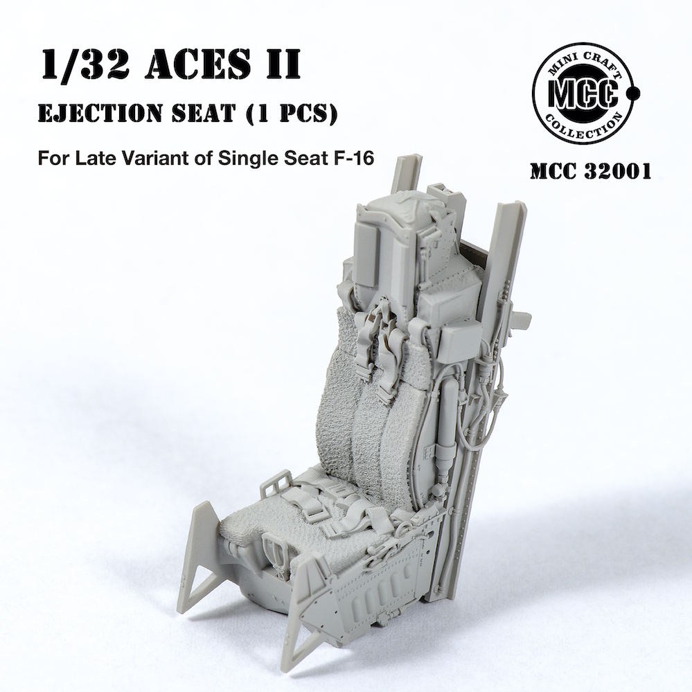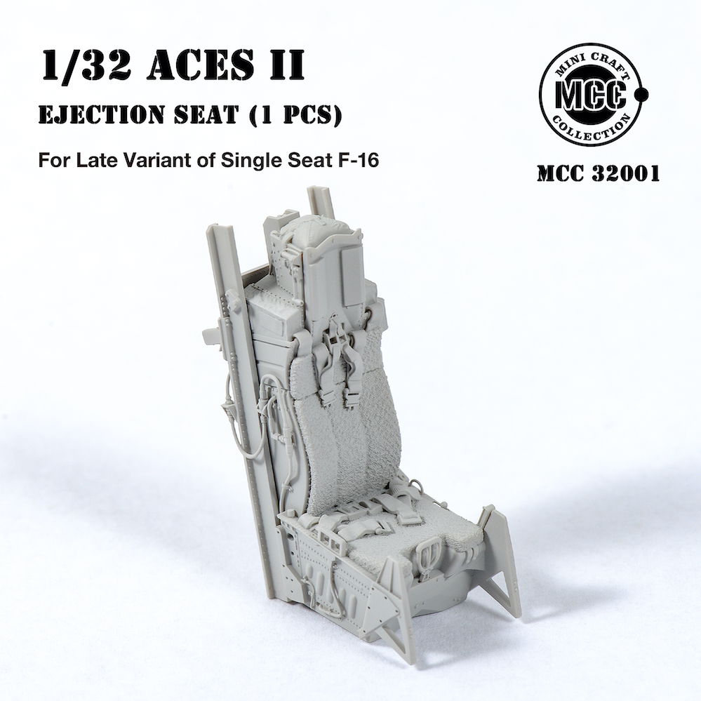 Mini Craft Collection - 1/32 Aces II Ejection Seat for F-16 Single-seat Variant Late. 1 pcs of Aces II ejection seat, Mid/Later type, wool pad. For F-16C Fighter mid/late production, from block 30/32. All parts are made by 3d-printed. Fits all brands Tamiya