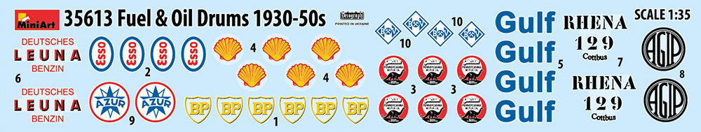 Miniart - 1/35 Fuel & oil drums 1930-50s box contains 12 models of fuel and oil drums 1930-50s. decal sheet is included (