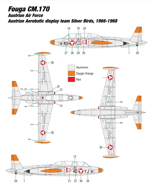 Miniwing-Plastic - 1/144 Fouga CM.170 Magister 2 kits, Austria, German Navy and Finland decals versions, Boxed