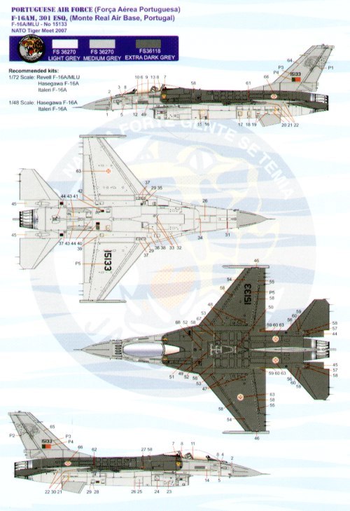 Model Alliance - 1/72 Nato Tiger Meet 2007 (3) General-Dynamics F-16A Fighting Falcon 15133 Portuguese Air Force, Lockheed-Martin F-16C 93-0608 Turkish Air Force with Father Christmas on fin, McDonnell-Douglas EF-18A (F/A-18A) Hornet 15-13 Ala 15 Spanish