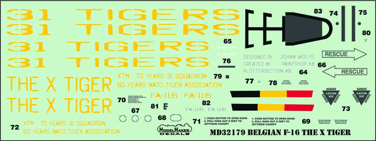 1/32 Belgian Lockheed-Martin F-16 The X Tiger decals + masks set