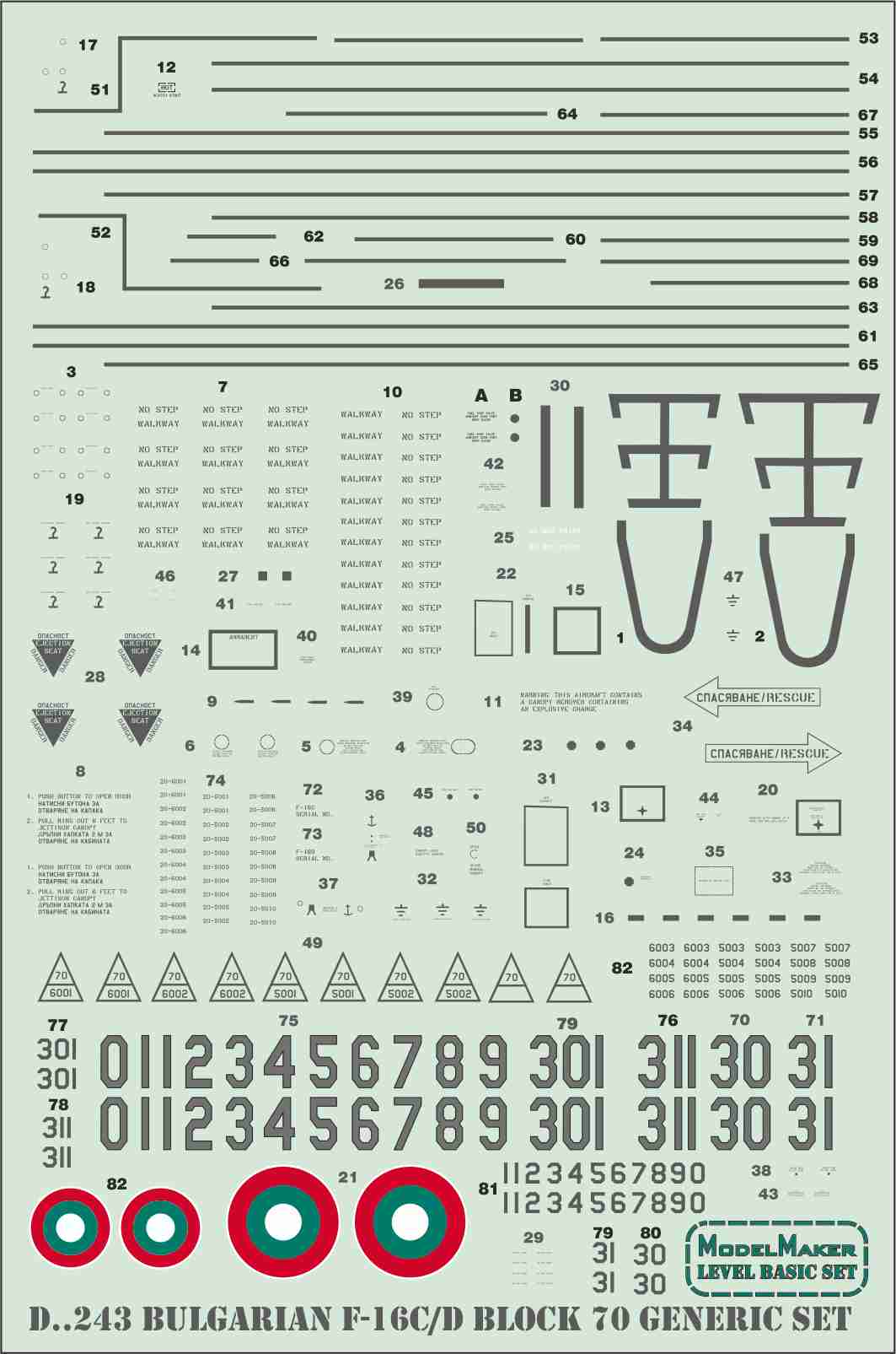 1/72 Bulgarian F-16C/F-16D block 70 generic set