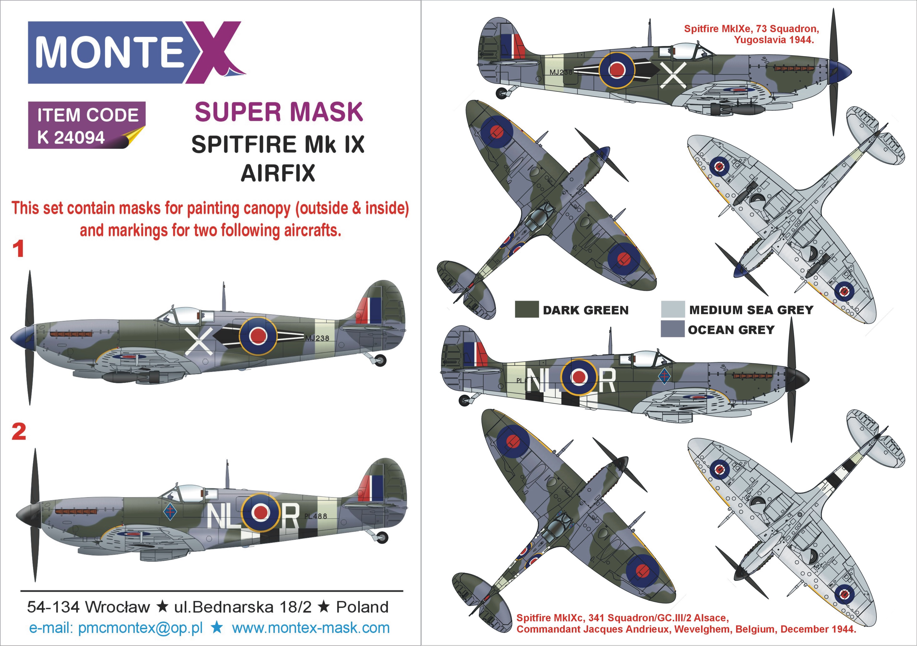 Montex - 1/24 Supermarine Spitfire Mk.IXc (for Airfix kits) 2 canopy mask (outside & inside) + 4 insignia masks
