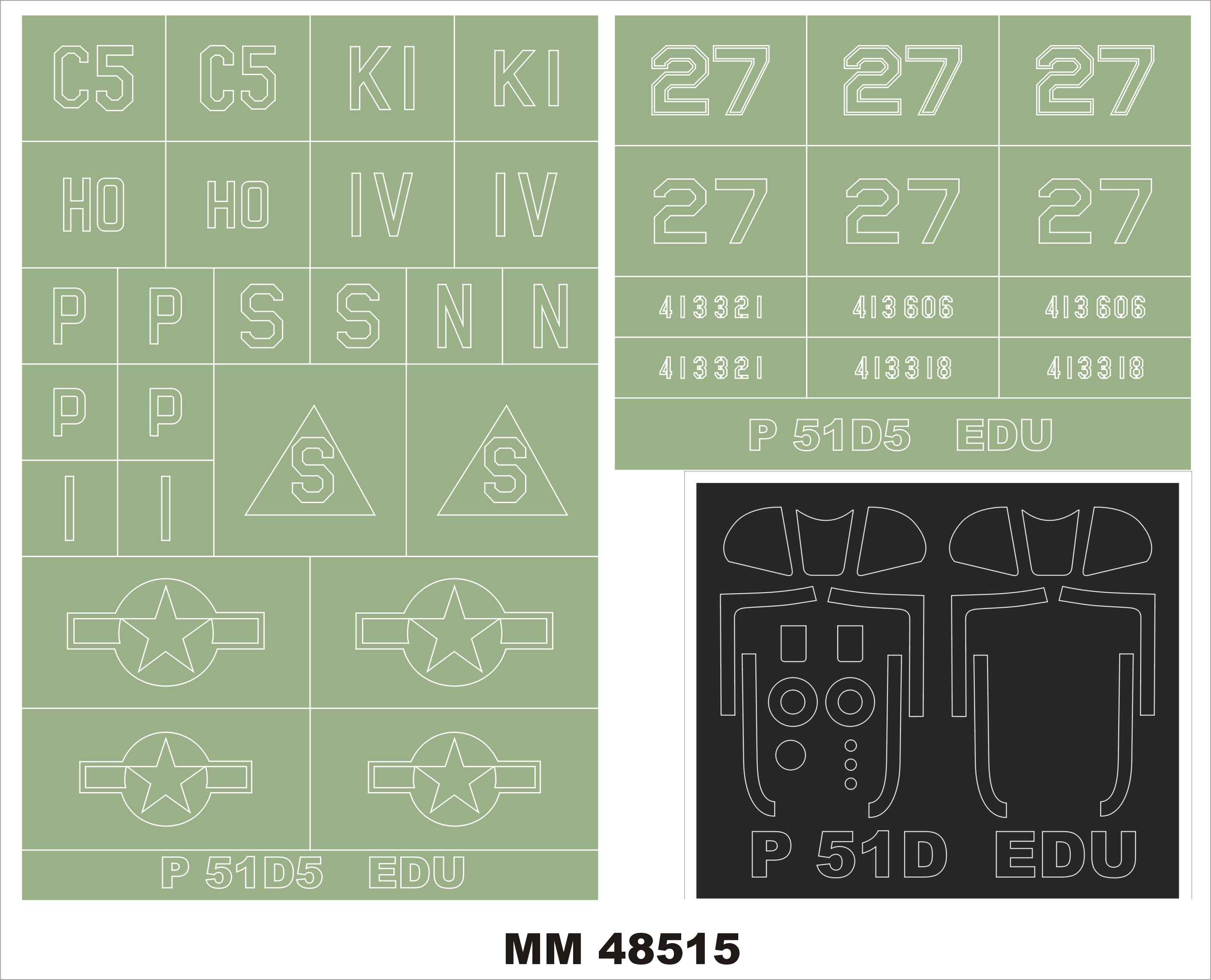 Montex - 1/48 North-American P-51D-5 Mustang 2 canopy masks (outside & inside) + insignia and markings masks (for Eduard ED82101 kits)