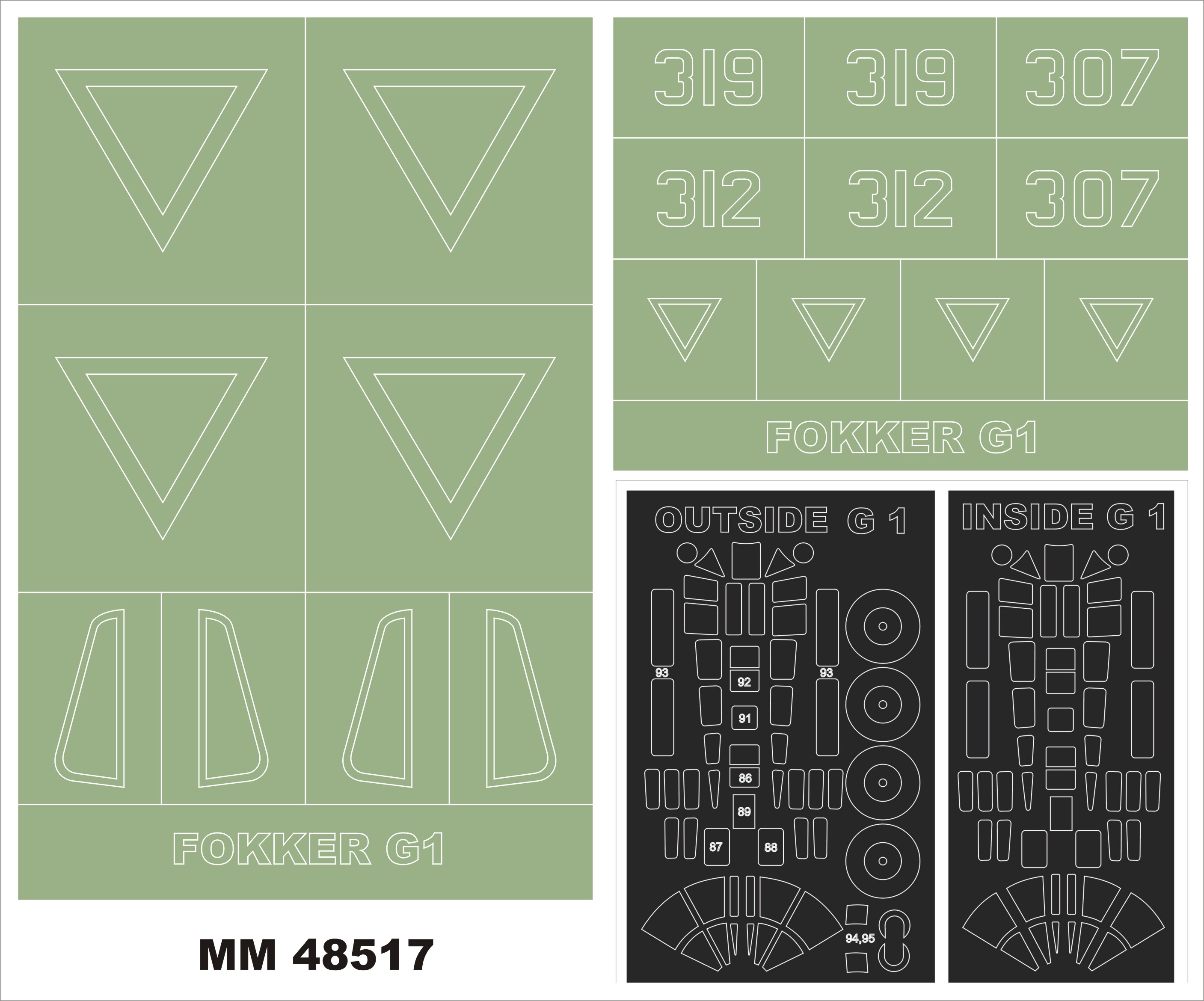 Montex - 1/48 Fokker G-1a 2 canopy masks (outside & inside) + insignia and markings masks (for Micro-Mir MM48-016 kits)