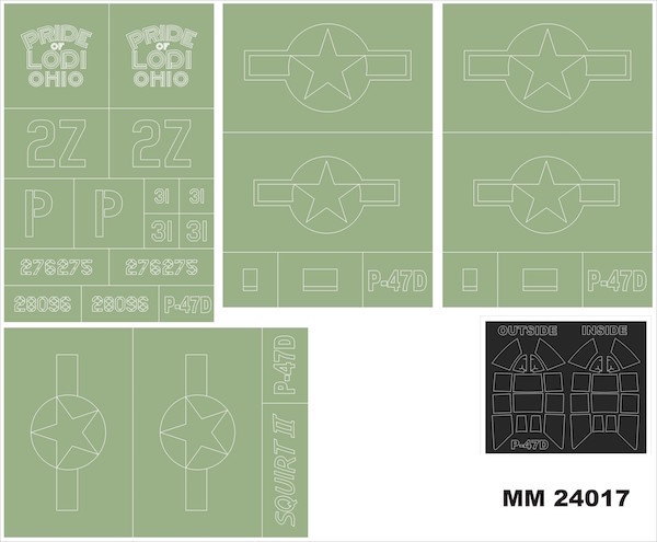 Montex - 1/24 Republic P-47D Thunderbolt 'Razorback' (for Kinetic Model kits) K3208 2 canopy masks(outside & inside) + 4 insignia masks