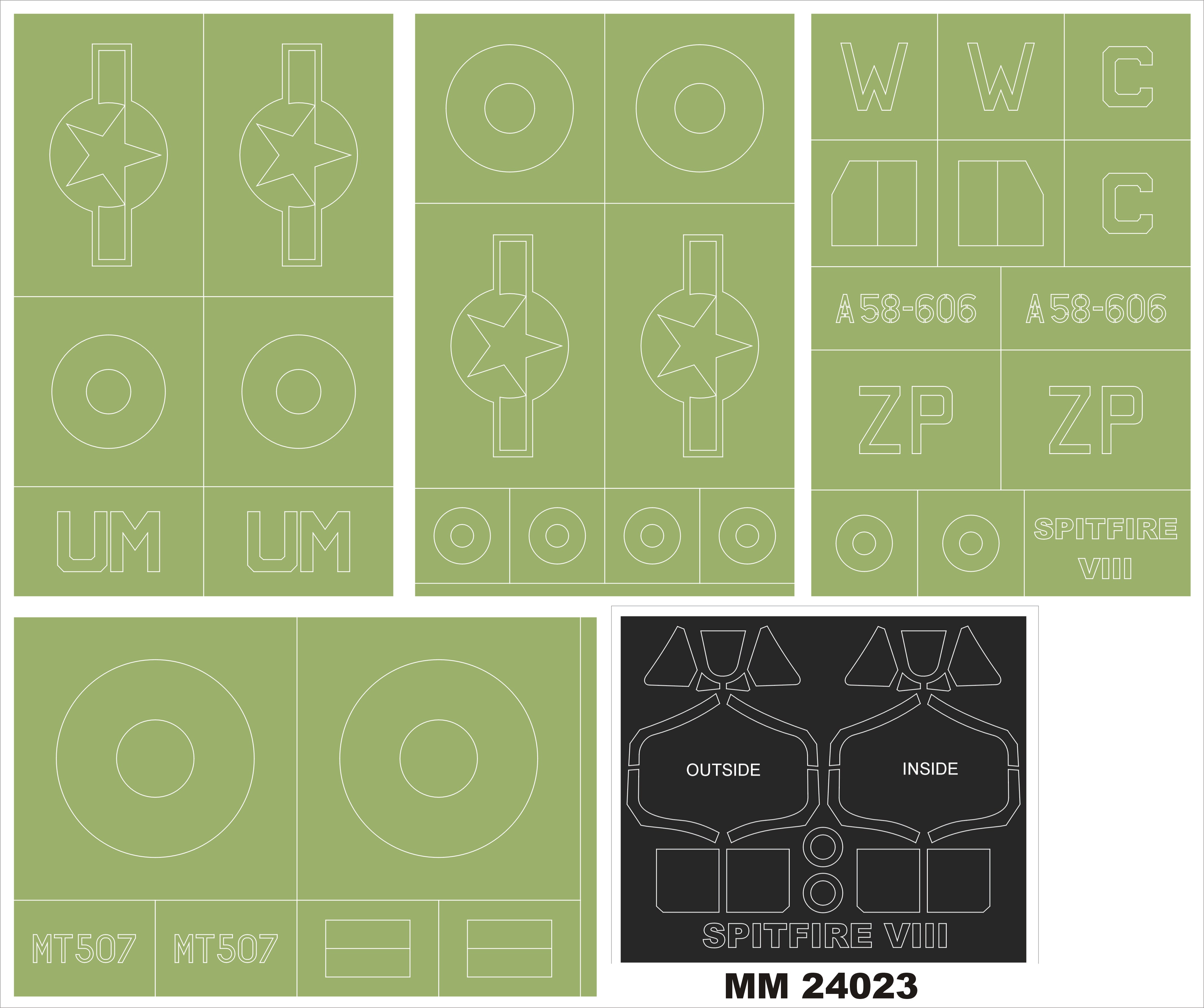 Montex - 1/24 Supermarine Spitfire Mk.VIII 2 canopy masks inside and outside + 4 insignia masks for Airfix