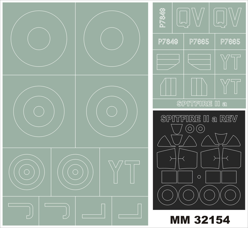 Montex - 1/32 Supermarine Spitfire Mk.IIa 2 canopy masks(outside & inside) + 2 insignia masks (designed to be used with Revell kits)