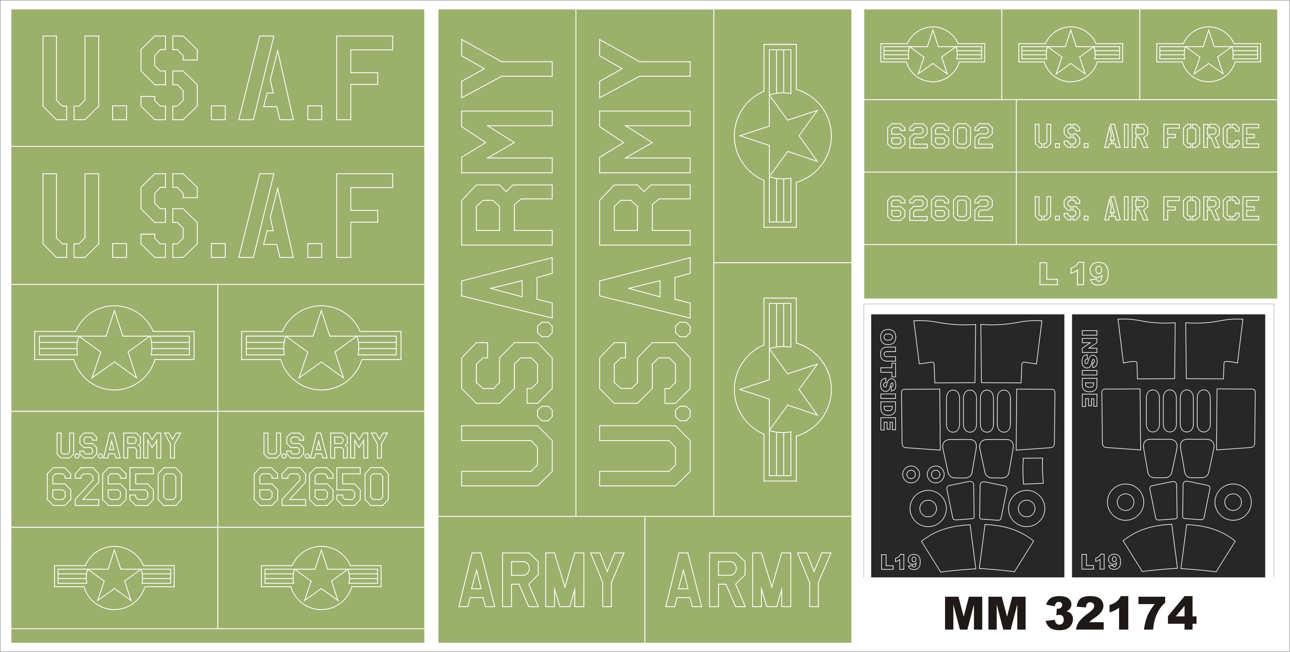 1/32 Cessna L-19/O-1 Bird Dog 2 canopy masks + 3 insignia masks