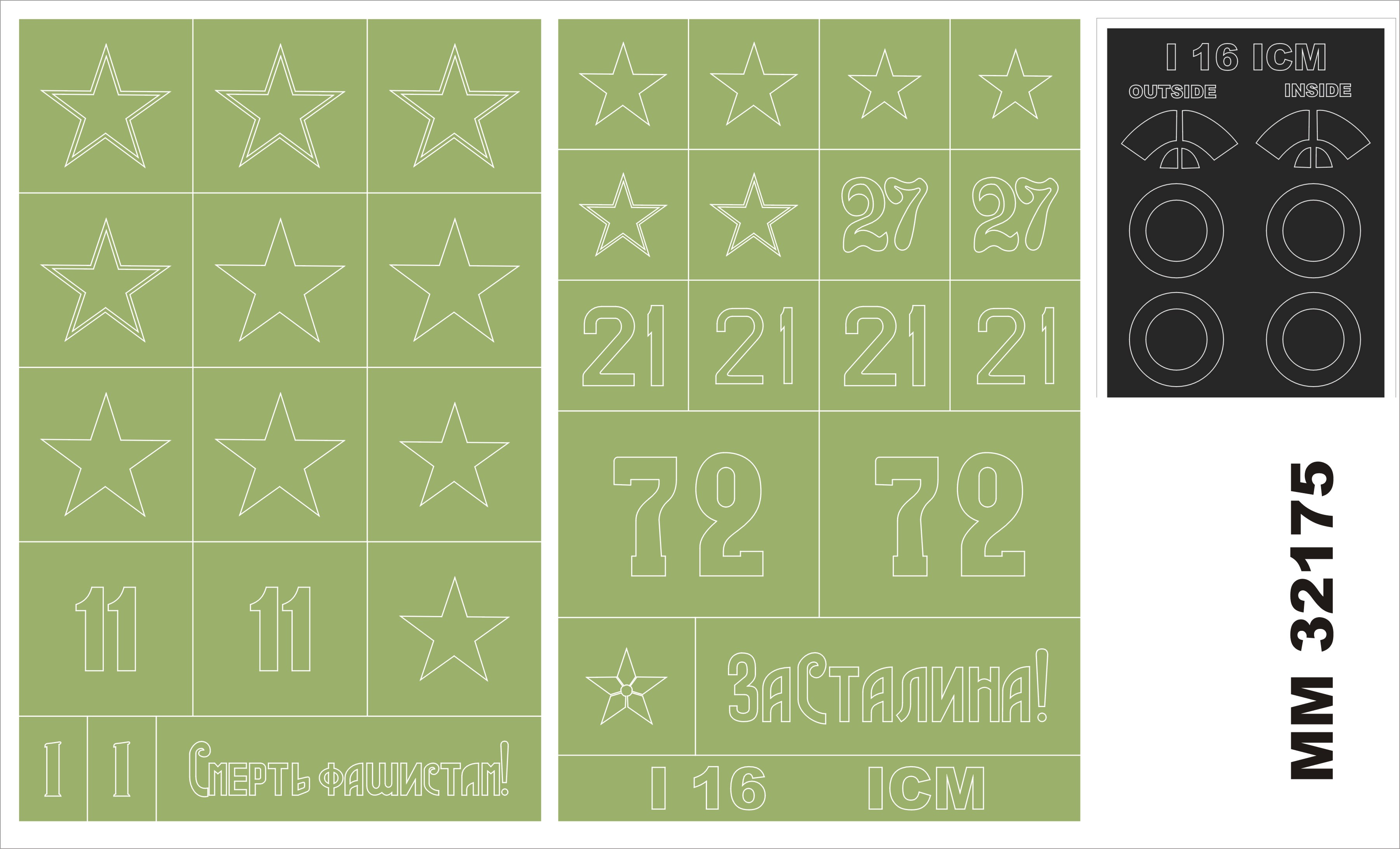 Montex - 1/32 Polikarpov I-16 type 24, 2 canopy masks(outside & inside) + 2 insignia masks (for ICM kits)