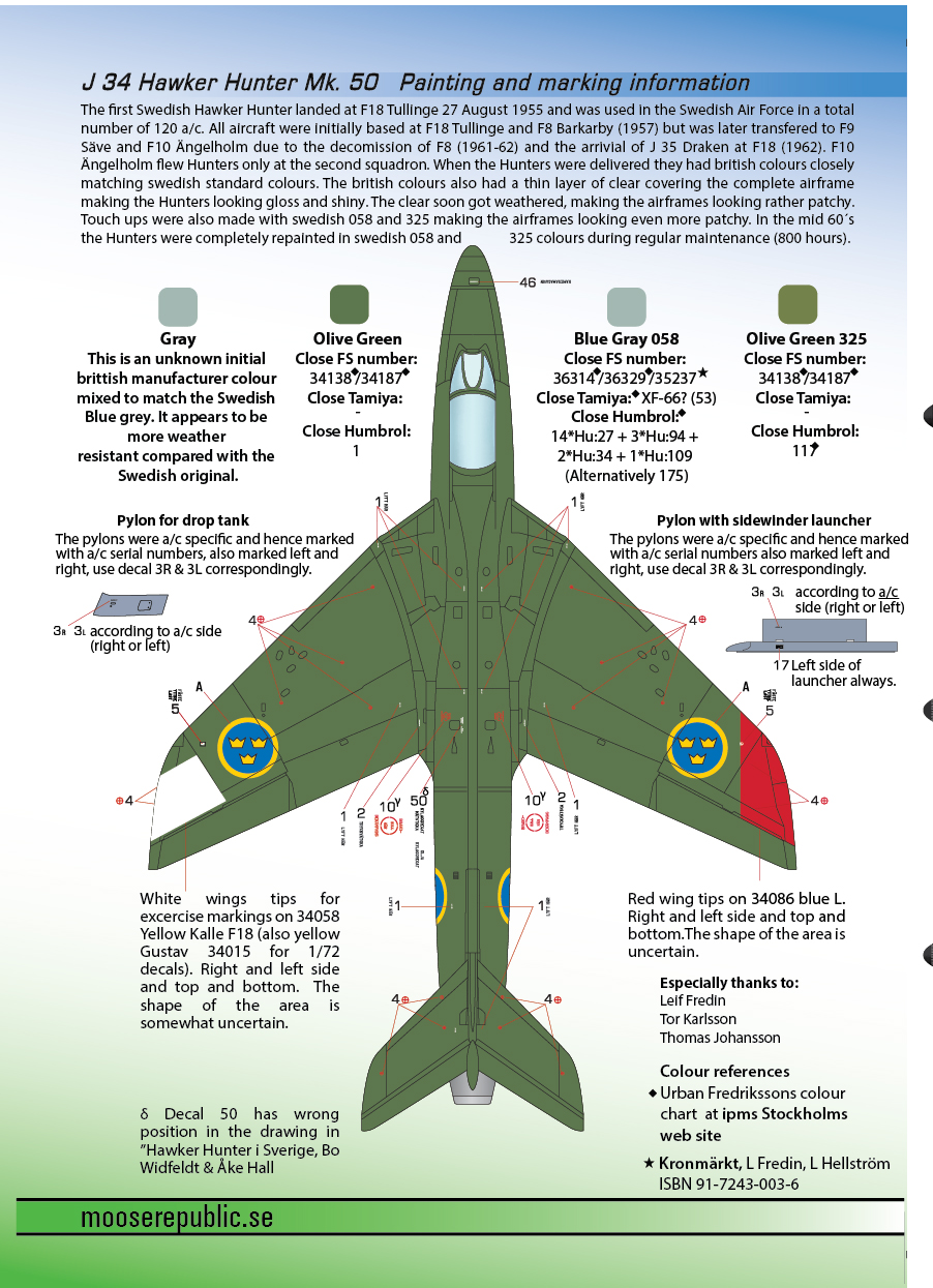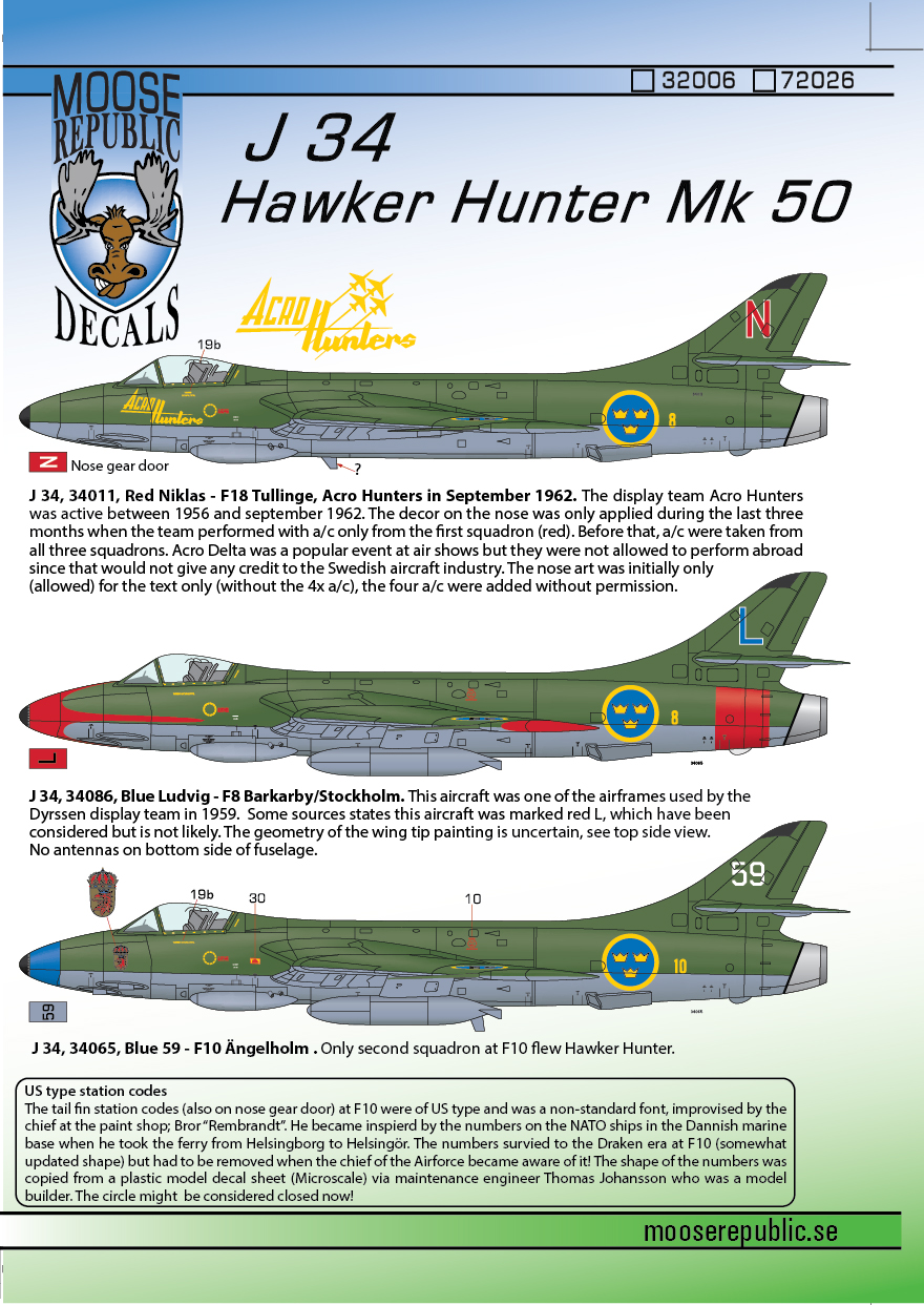 Moose Republic Decals - 1/32 J 34 Hawker Hunter (FGA.9/Mk.58 F.4 F.6)