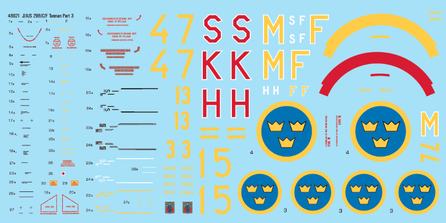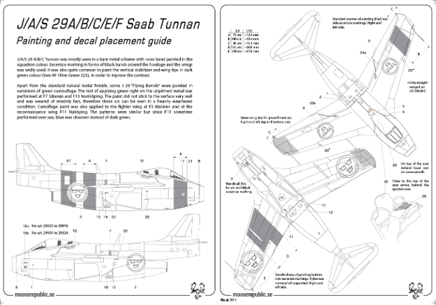 Moose Republic Decals - 1/48 Saab Tunnan Part 3. J/S-29A/J-29B/J-29C/J-29D/J-29F Green Tunnan.