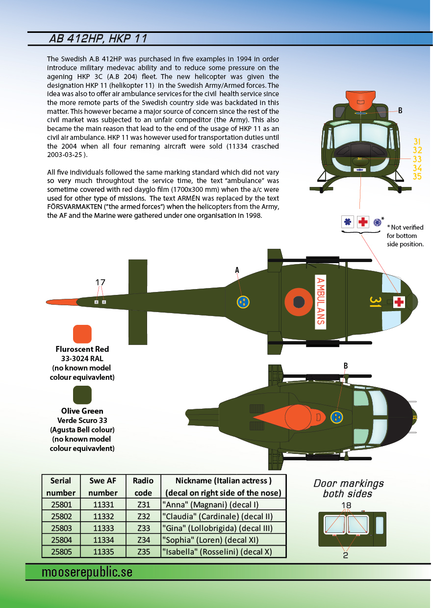 Moose Republic Decals - 1/72 Agusta-Bell Ab 412HP/HKP 11
