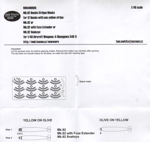 New Ware - 1/48 Masks for Mk.82 Bombs Stripes 'one yellow stripe' (designed to be used with Hasegawa kit HAX4801)