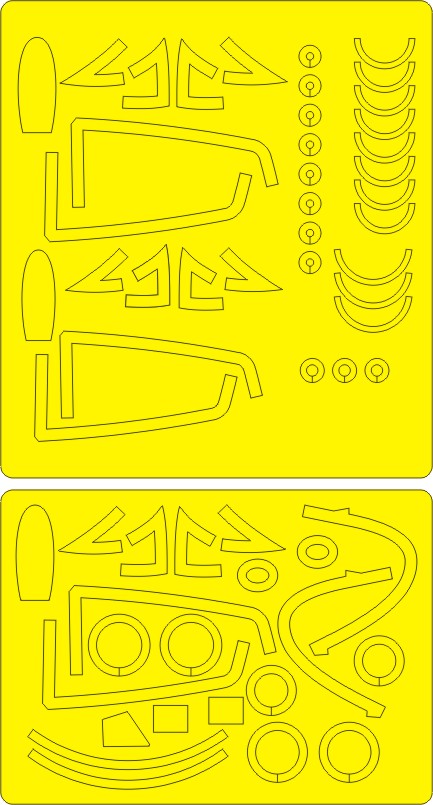 New Ware - 1/48 Grumman F9F-2P Panther ADVANCED kabuki masks aircraft canopy including window seals, nose windows, wheels, position lights, air intakes, fuel tanks, yellow stripes on bombs (for Trumpeter kits)