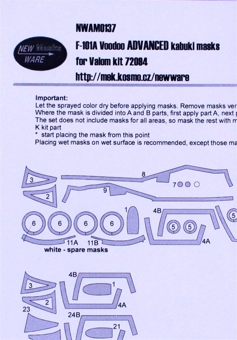 New Ware - 1/72 Mask McDonnell F-101A Voodoo ADVANCED set for aircraft canopy including window seals, wheels. nose cone, bottom of the rear of the aircraft (for VAL72094 kits)