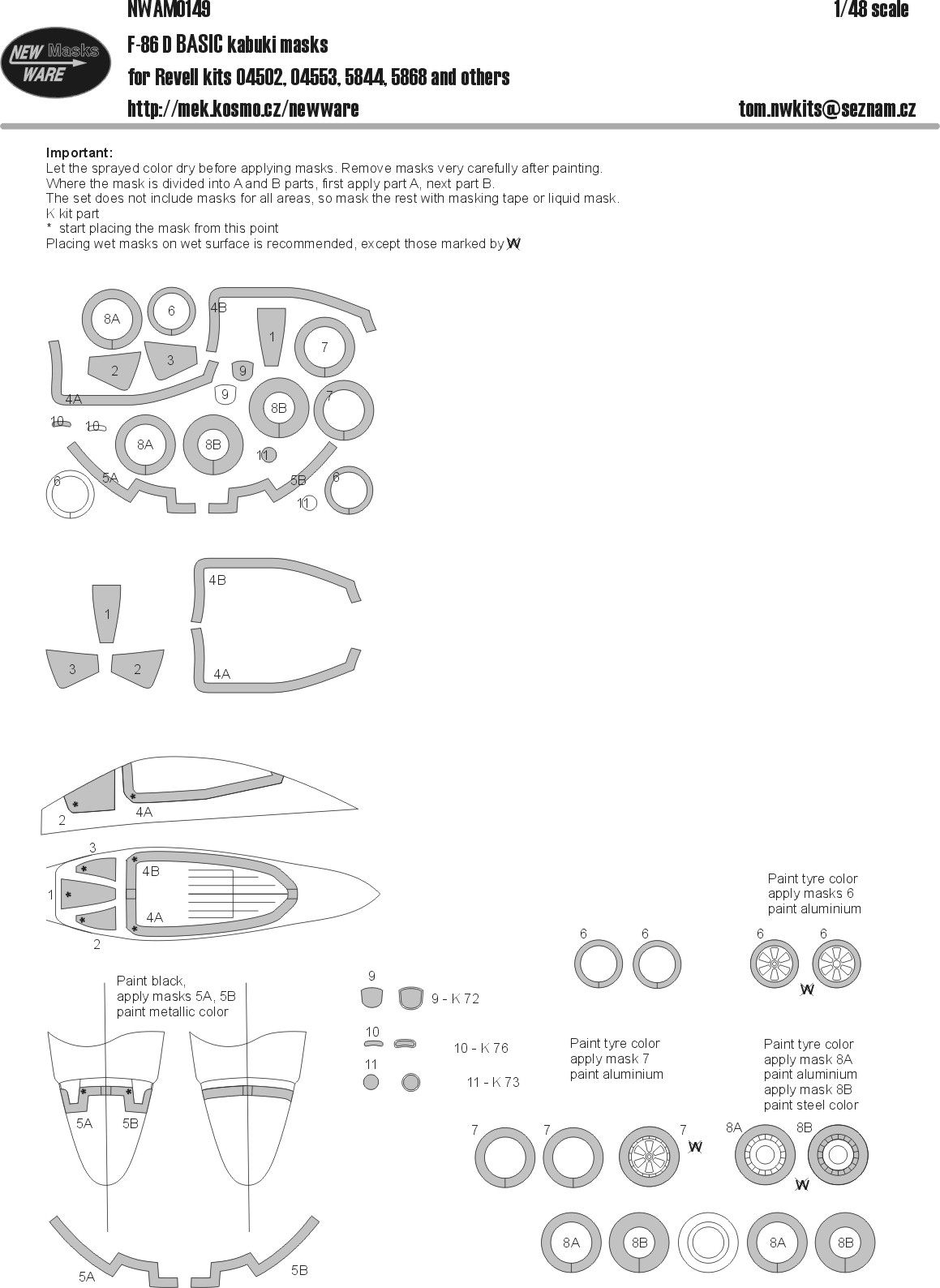 New Ware - 1/48 Mask North-American F-86D Sabre BASIC (for Monogram and Revell kits)
